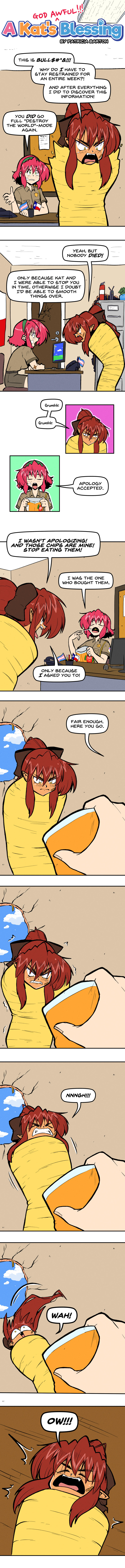 That’s it for this week! I’ll make a post for y’all to submit ideas for the between chapter break! Just, ya know, please don’t suggest anything that will be taxing to draw. Pretty please?